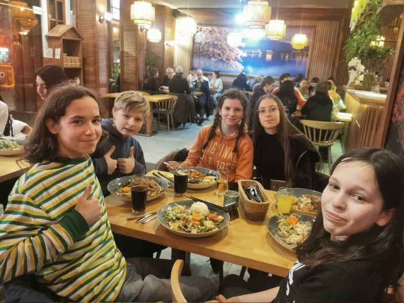 Am dritten Tag waren wir mit unserer Band im Kunstmuseum und haben sehr viel schöne und interessante Kunstwerke gesehen, bevor wir mit der Band weiter an unserem Stück gearbeitet haben. Am Abend haben wir das Stück "Find a partner" der englischsprachigen Theater-AG aus Gelsenkirchen gesehen. Uns hat es allen sehr gut gefallen. Im Anschluss haben wir im Theater Pizza gegessen.