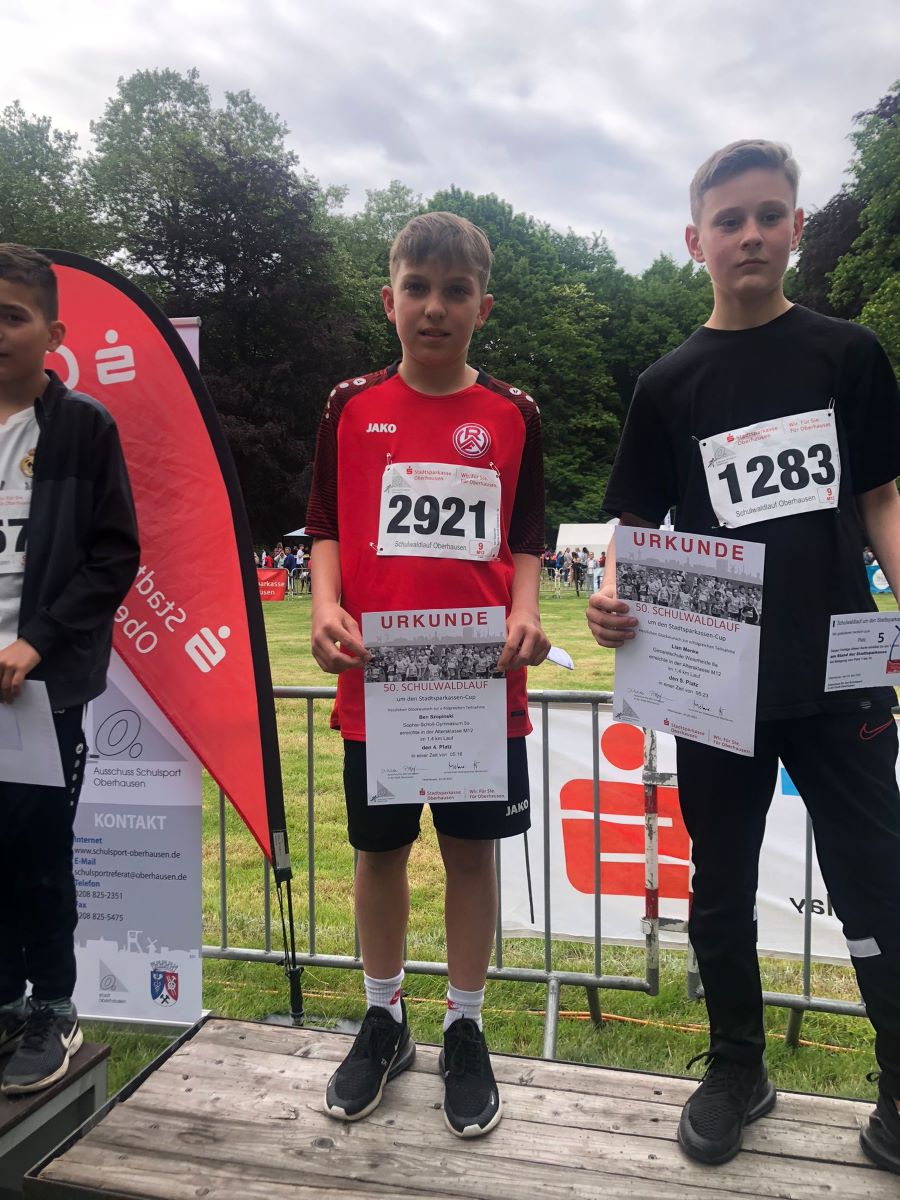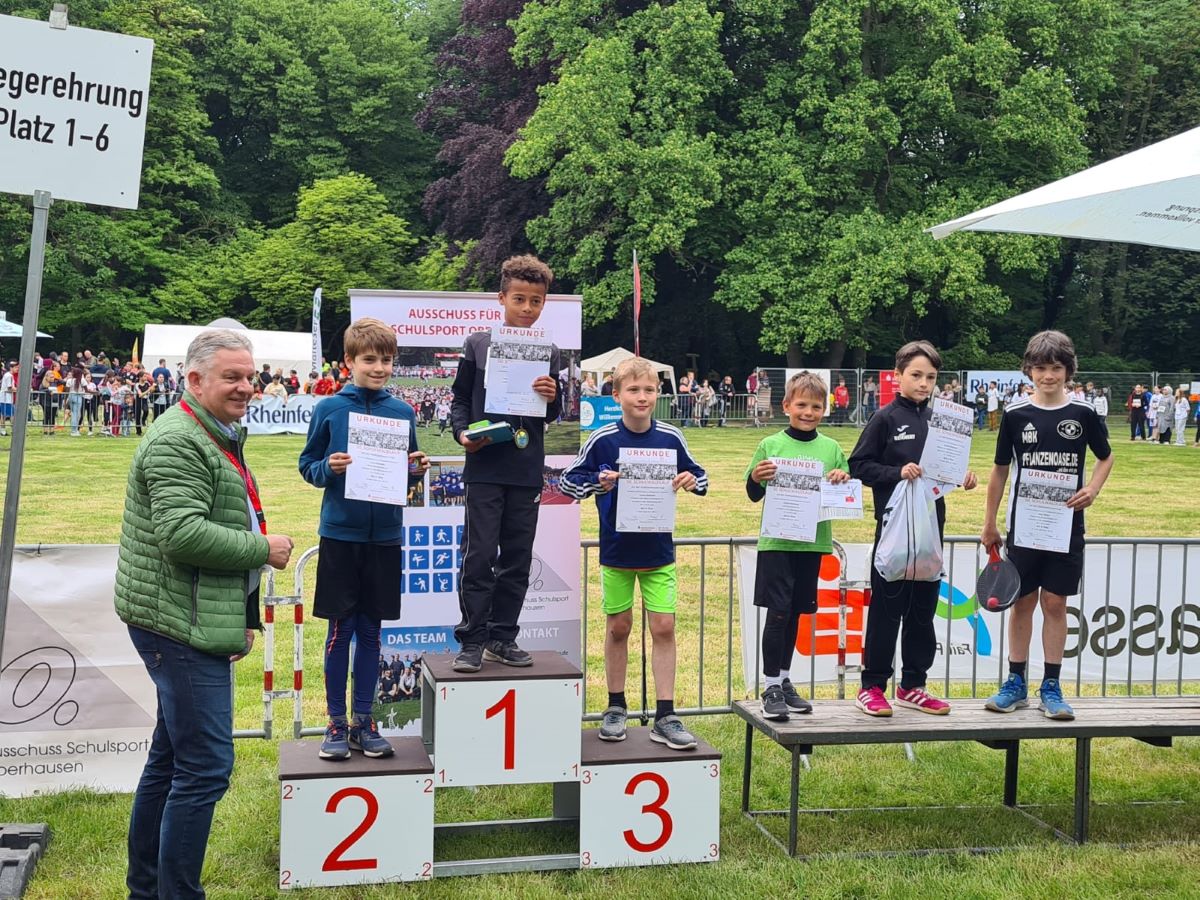 Und nicht nur die Schüler:innen und Schüler waren flott unterwegs: Den ersten Platz beim Prominentenlauf, der aufgrund des 50. Jubiläums durchgeführt wurde, holte der zweifelsohne schnellste Lehrer in Oberhausen, Herr Piffko.
