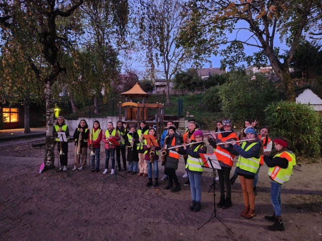 musikalisch begleitet. Erst seit Februar haben die Kinder ihre Blasinstrumente kennengelernt und neun Monate später durften unsere Musiker die Zuschauer mit 5 Martinsliedern begeistern. Es hat allen viel Freude und Spaß gemacht. An beiden Abenden haben die Kinder nicht nur viel Applaus erhalten, sondern auch Martinsbrezeln bekommen. Die nächsten Auftritte sind am 03.12.(Tag der offenen Tür) und an den traditionellen Winterkonzerten, die in diesem Jahr am 20. und 21.12. stattfinden, geplant.